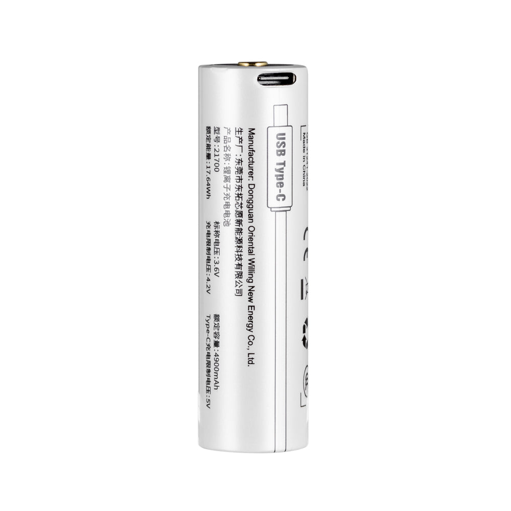 21700 USB-C Rechargeable Li-ion Battery for Flashlights